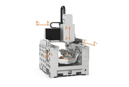 FMC-600V 五軸加工中心整體采用龍門(mén)式結(jié)構(gòu),雙立柱高架結(jié)構(gòu),Y軸采用雙驅(qū)結(jié)構(gòu),并配置AC軸搖籃式回轉(zhuǎn)工作臺(tái),可一次裝夾完成銑、鉆、擴(kuò)、鏜、攻、锪等多工序的高精、高效加工。